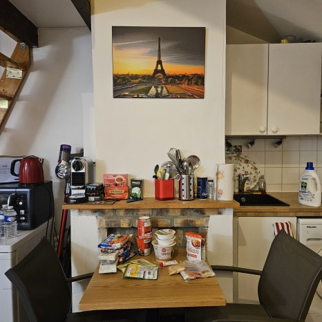 에펠탑 사진이 멋스럽게 걸려진 미니 부엌ㅎㅎ